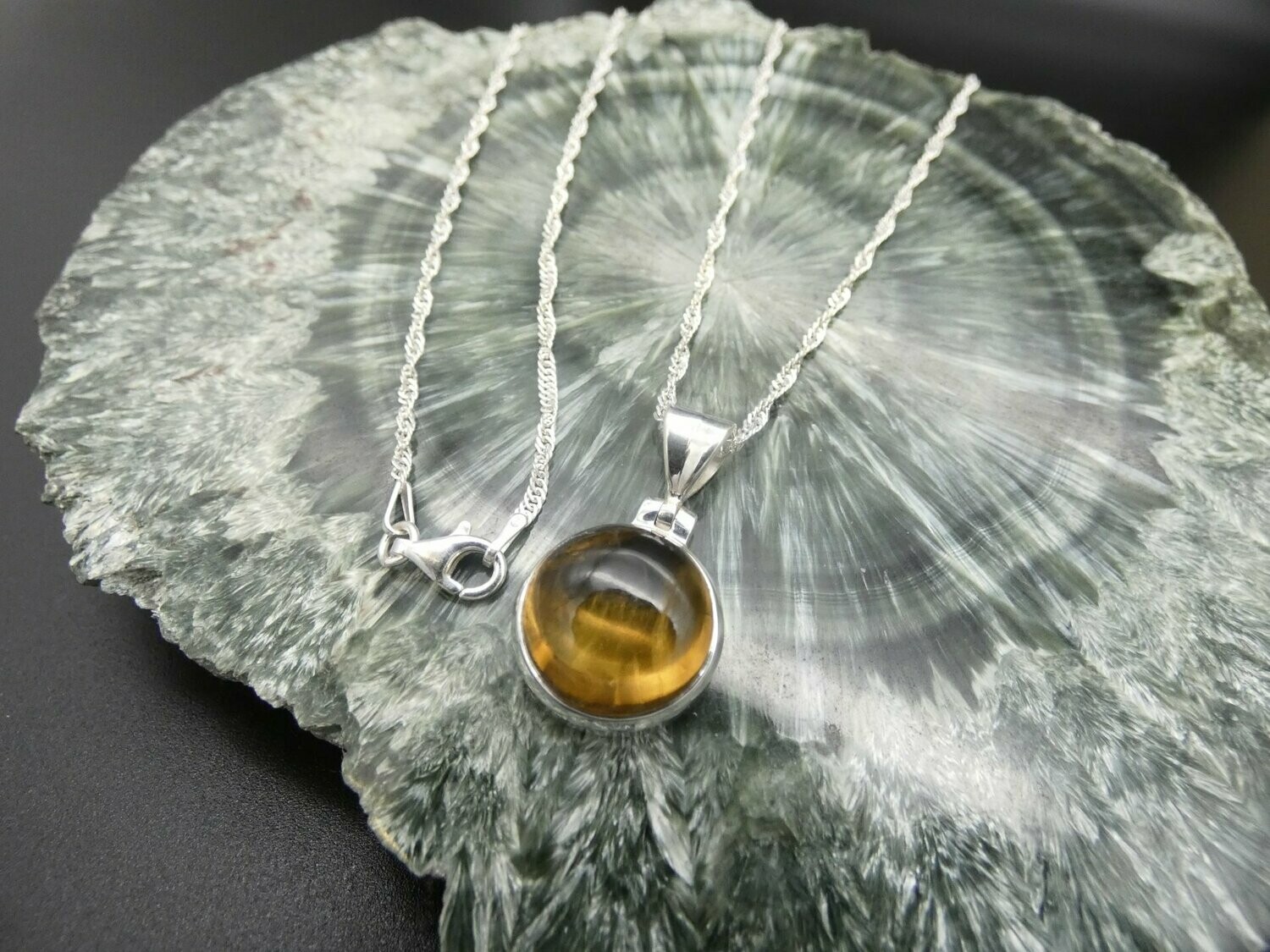 Gerne liefern wir Ihnen den Stein mit einer Kette aus Silber 925 mit einer Breite von 2,1 mm und Höhe von 0,6mm. Die Kette ist gedreht und hat einem Karabinerverschluß. Natürlich können Sie auch eine andere Kette wählen. Bitte beachten Sie die Preisanpassungen. Auf die von uns empfohlenen Ketten erhalten Sie einen Rabatt von 25 Prozent. Dieser Rabatt ist in der Preisangabe bereits eingerechnet.